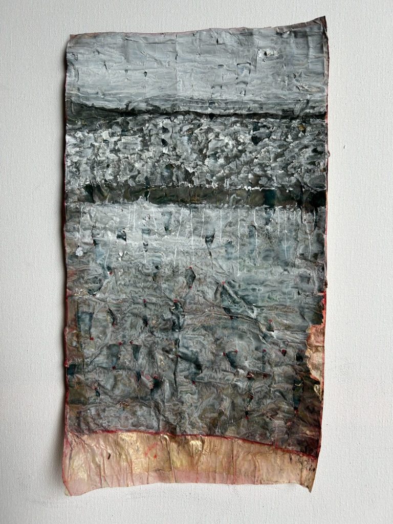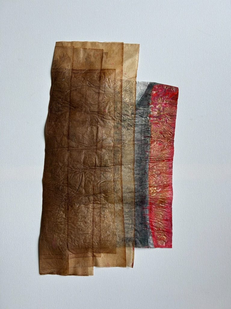 Mein aktuelles Projekt: Friedensstelen aus Pergamentpapier, wachsend durch das handgeschriebene Wort "Frieden" vieler Menschen in ihrer Muttersprache.